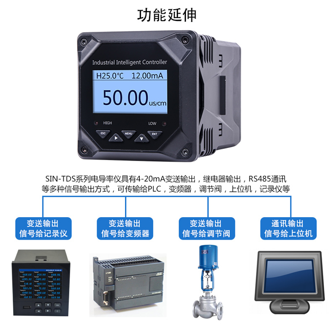 SIN-TDS210工業電導率儀表,可對各種工業用水的電導率(TDS)值進行連續測量和控制。根據水工業的環境和特點結合國際供電標準,考慮了特殊環境的電氣設計規范,增加了220VAC供電。