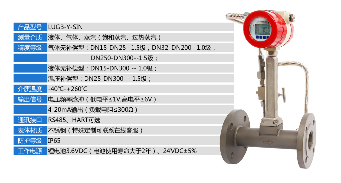LUGB-Y-SIN抗震振渦街流量?jī)x表廣泛用于供熱公司、熱力公司、化工行業(yè)等行業(yè),對(duì)過(guò)熱蒸汽、飽和蒸汽、壓縮空氣和一般氣體、水和液體的計(jì)量和控制。加厚本體,可有效避免現(xiàn)場(chǎng)管道振動(dòng)帶來(lái)的數(shù)據(jù)波動(dòng)和誤差。