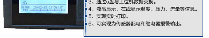 SIN-R200C系列無紙記錄儀是一種高速高性能微處理器和3英寸單色液晶顯示分辨率320*200,對現(xiàn)場各種溫度、壓力、流量、電量等信號實現(xiàn)監(jiān)測、控制和記錄功能。SIN-R200C系列無紙記錄儀可自由組態(tài)輸入標準電流、標準電壓、熱電偶、熱電阻、頻率等信號,可實現(xiàn)為傳感器配電和繼電器報警輸出,并且可通過U盤或通訊方式與上位機進行數(shù)據(jù)交換。無紙記錄儀本身具有實時數(shù)據(jù)顯示畫面、曲線顯示畫面以及棒圖數(shù)據(jù)顯示畫面,同時,可以與微型打印機相連接,實現(xiàn)現(xiàn)場打印功能,與聲光報警器連接,實現(xiàn)現(xiàn)場聲光報警功能。